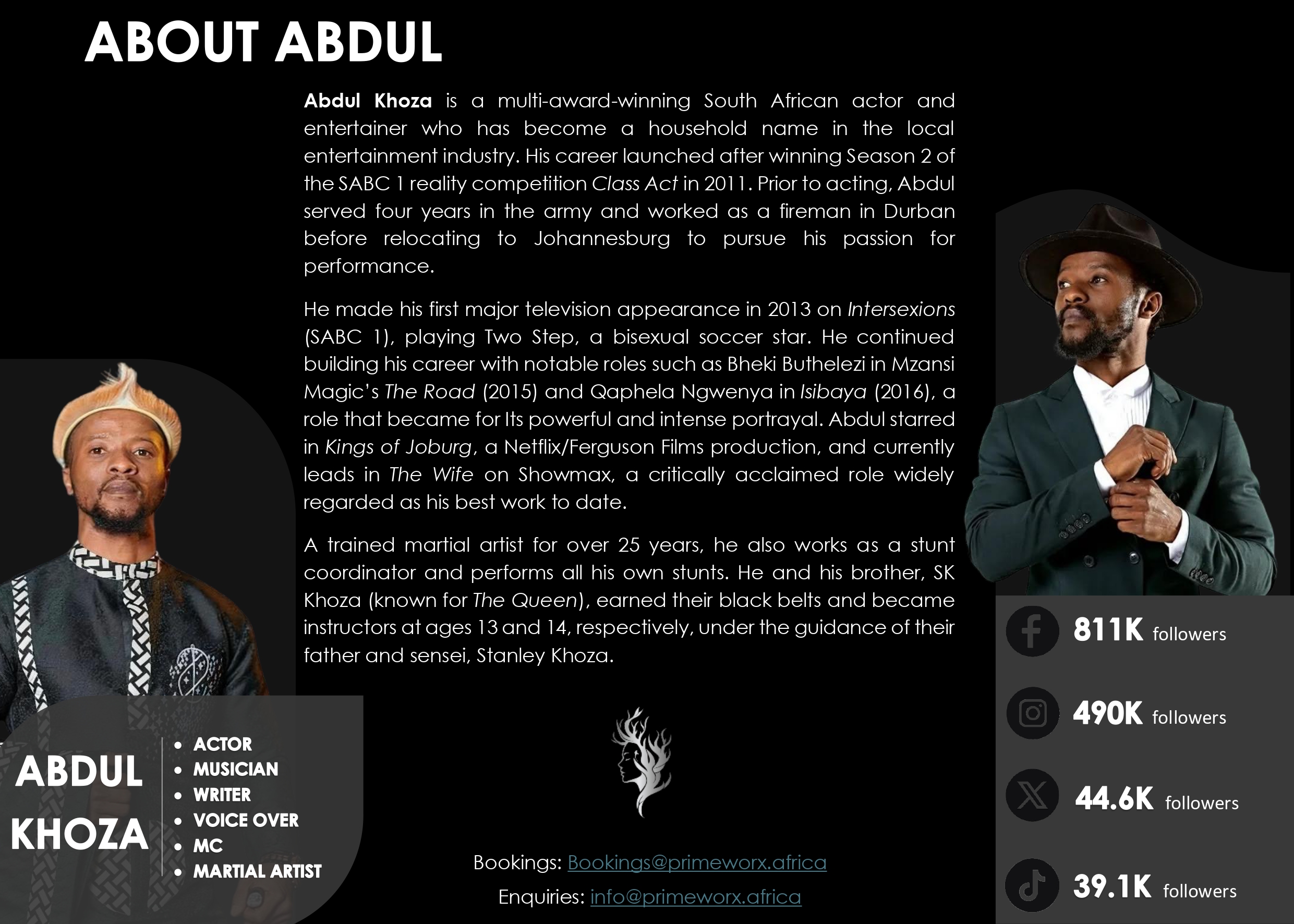 Actor, Musician, Writer, Voice Over, MC, Martial Artist